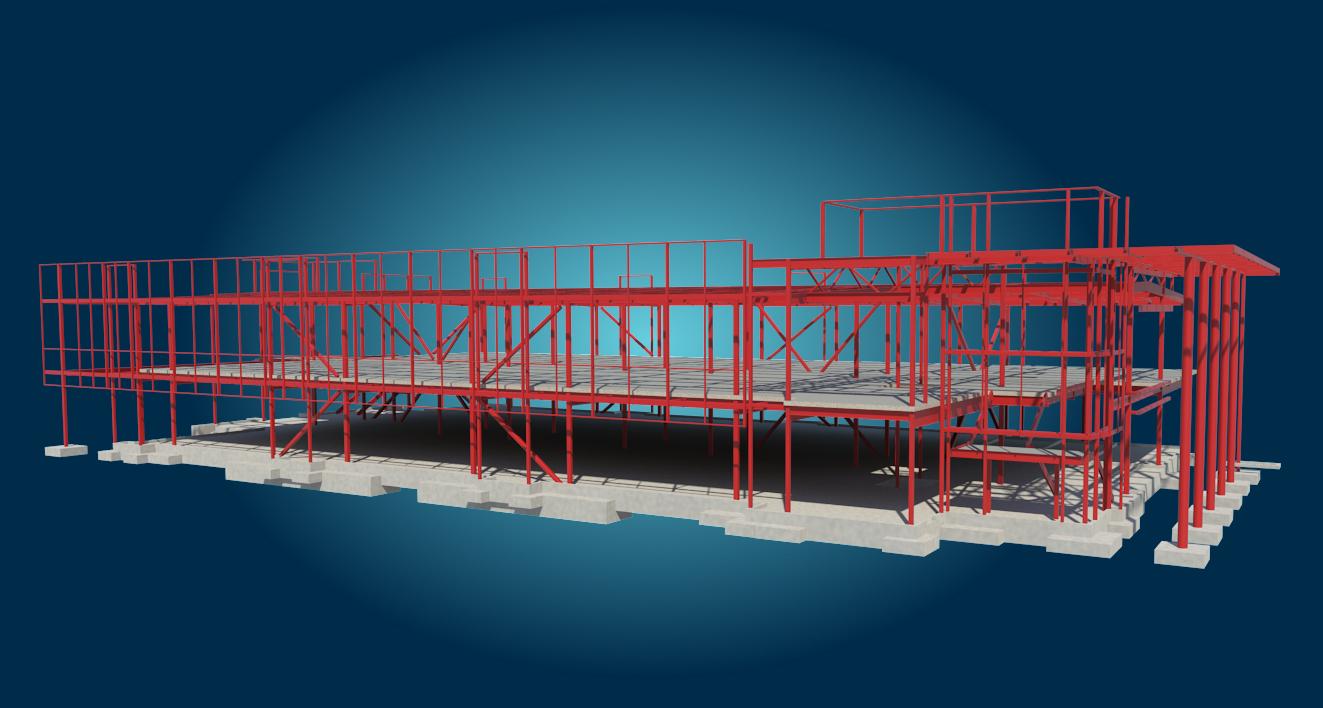 The lateral system is comprised of ordinary concentrically braced frames (OCBF). In the East-West direction the braced frames are ‘X’-type frames. The North-South direction has narrower ‘Z’-types frames to fit between windows and to accommodate mechanical ducts. The second-floor framing is steel beams with a concrete floor. The roof, high roof, and canopy are framed with steel beams and a metal deck. The foundation is traditional spread footings at gravity columns and grade beams at the braced frames.